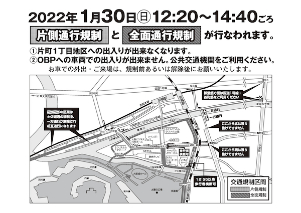 大阪ビジネスパーク周辺の交通規制の時間帯:12:20~14:40